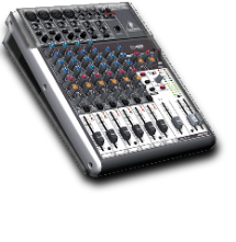 DJ SchmidU arbeitet mit Laptop und moderner DJ-Software. Mixer für Mikrofon(e) und weitere